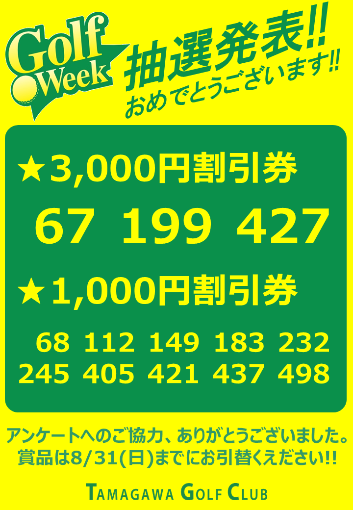 利用券が当たるゴルフウィーク抽選番号発表!!