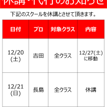 ゴルフスクール 12月度休講等のお知らせ