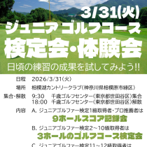 3/31(火)ジュニアゴルフコース検定会・体験会 受付開始!!
